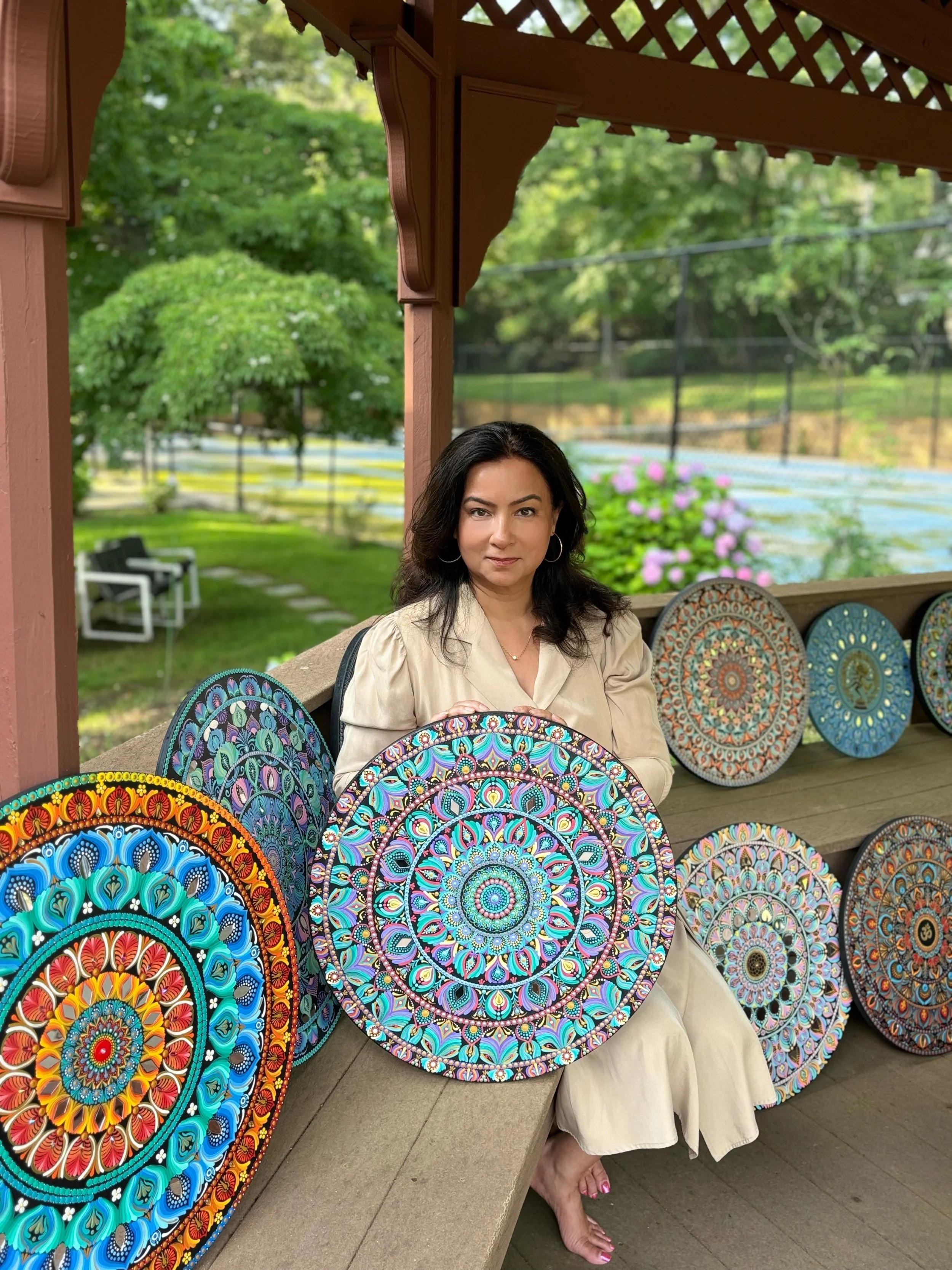 Creating mandalas is more than making art for me, it is a meditative practice that embodies harmony, balance and intention. I work with rich colors and symmetry to craft mandalas to serve as a bridge between tradition and contemporary design. Some of my artwork is inspired by tradition, others are intuitive and free-flowing - all are made with reverence and authentically handmade from the heart.